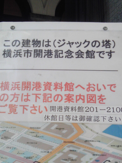 何なに…「この建物は(ジャックの塔)横浜市開港記念会館です」